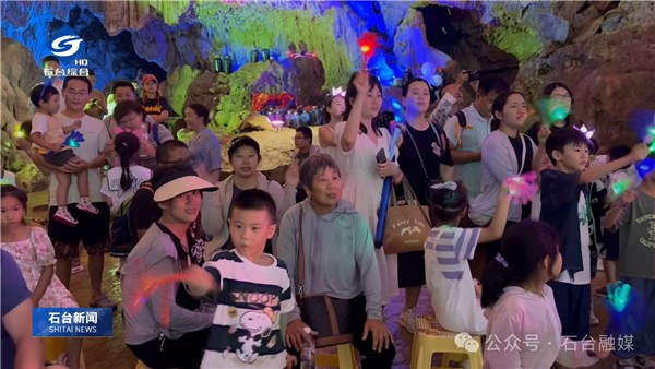 上午10点,音乐会在美轮美奂的溶洞内开启,一首首动听的歌曲不断将现场气氛推向高潮,将欢乐的情绪传递给每一位游客。