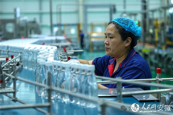 生产线上包装好的饮用水,从这里送往全国各地。人民网记者 陶涛摄