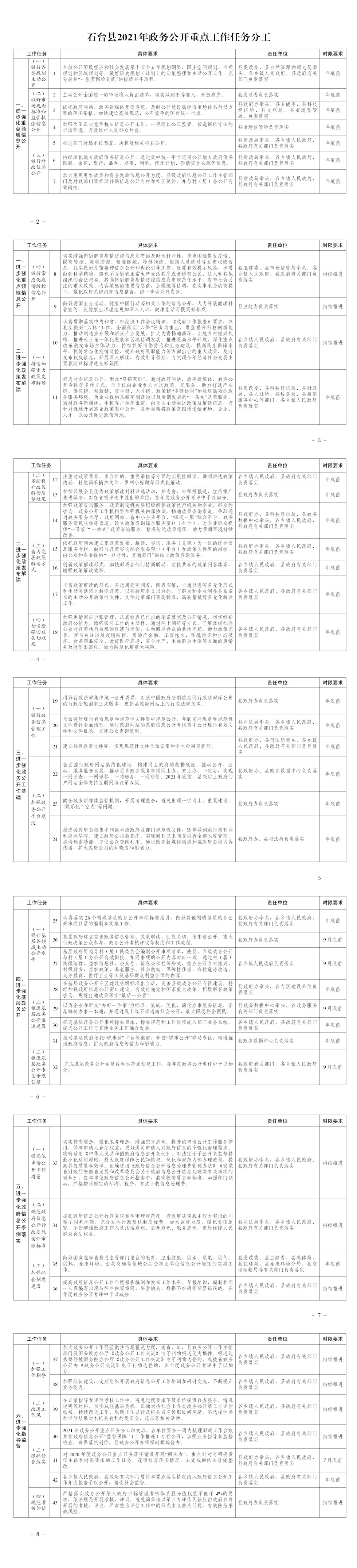 石台县2021年政务公开重点工作任务分工