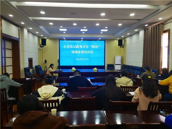 11月2日,我县召开基层政务公开“两化”领域业务培训,“两化”各领域县直单位和各乡镇政务公开业务人员参加培训。