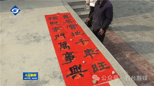 同时,还有多位书法名家现场为村民书写春联,书法家们挥毫泼墨,笔墨晕染,把对新年的期盼写进了一副副对联中,浓浓的情意和祝福,洋溢在字里行间,现场成为一片喜庆的红色海洋。
