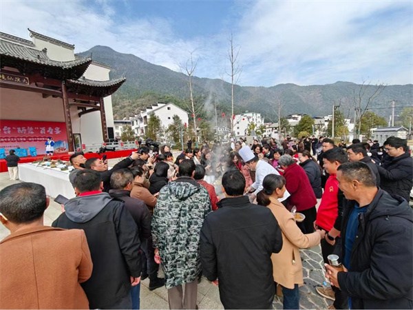 为弘扬中华民族尊老爱老传统文化,营造良好的节日氛围,1月17日上午,在传统节日“腊八节”来临之际,由池州市文旅局、石台县政府主办的“迎腊八 硒餐百寿宴”活动在大演乡新火村文化广场隆重举行。县委常委、宣传部部长钱叶勇、县文旅局局长刘海燕、大演乡党委主要负责同志、石台旅游发展股份有限公司总经理曹必隆出席活动,本次活动还邀请牯牛降景区周边村落中年龄70周岁及以上的高龄老人以及游客朋友们共计一百余人参加。
