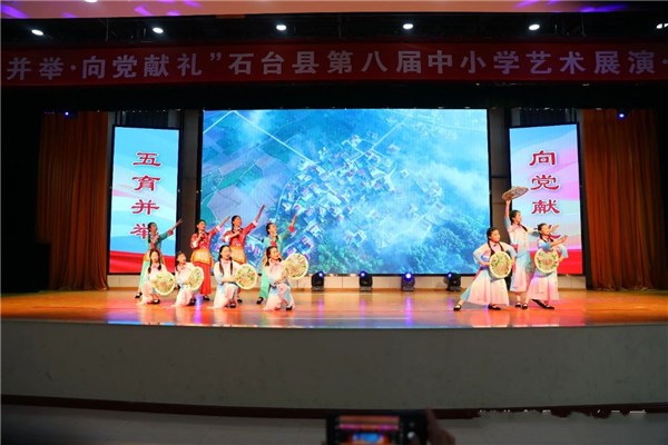 活动现场,来自全县各中小学、幼儿园的30支代表队,纷纷登台献艺,舞蹈、合唱、朗诵、短剧等节目依次上演,他们用优美的舞姿、动人的歌声、精湛的表演,歌颂伟大祖国,展示少儿青春风采。