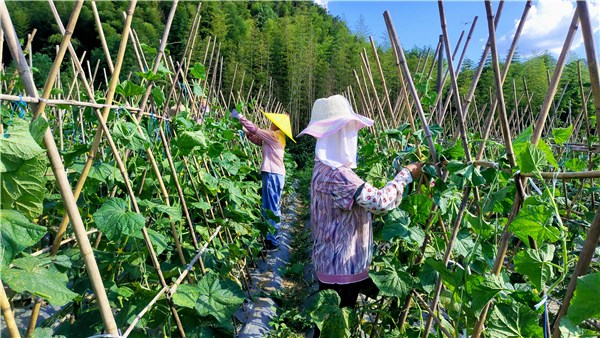 九月的横渡镇,秋高气爽,横渡镇横渡村蔬菜基地迎来了一年中最忙碌的采摘季。清晨的阳光洒在绿油油的菜畦上,工人们穿梭于田间地头,熟练地采摘着新鲜的黄瓜、茄子和甜玉米,一派丰收的喜人景象。