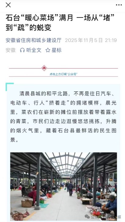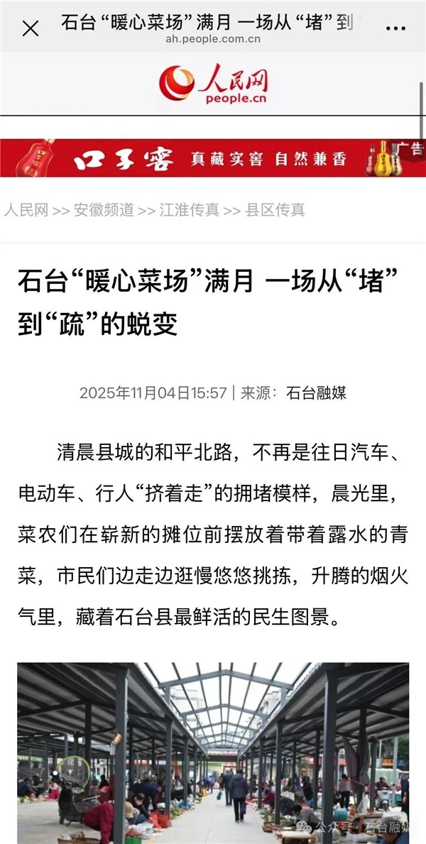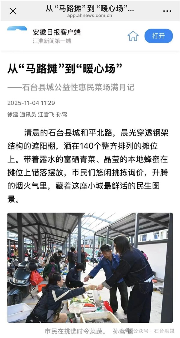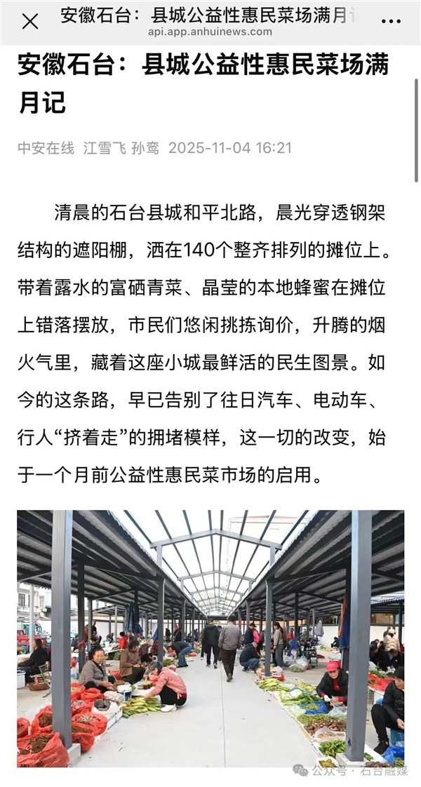 小菜场,大民生。近日,石台“暖心菜场”迎来正式运营的“满月礼”。不仅赢得了市民的称赞,更意外地“火”出了圈,多家媒体平台纷纷报道!