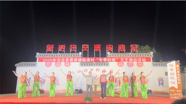 演出在欢腾喜庆的舞蹈《千红万红满堂红》中拉开帷幕,手持彩扇的琏溪村舞蹈队员们踏着欢快的节奏,舞出乡村振兴的新气象。随后,青年歌手倾情献唱《大中国》《九九女儿红》,表达了对美好生活的向往。石台民歌剧《山乡新梦》以本土唱腔演绎新农村故事,唱出了石台近年的飞速发展。黄梅戏联唱《夫妻双双把家还》《果然喜从天上降》展现非遗魅力。快板表演《我为振兴献一策》凝聚发展共识。最后斗笠舞《十送红军》以恢宏场面再现红色记忆,赢得阵阵掌声。今夜的歌声里藏着乡土热忱,舞姿中满是生活热爱,笑语间皆是邻里真情。