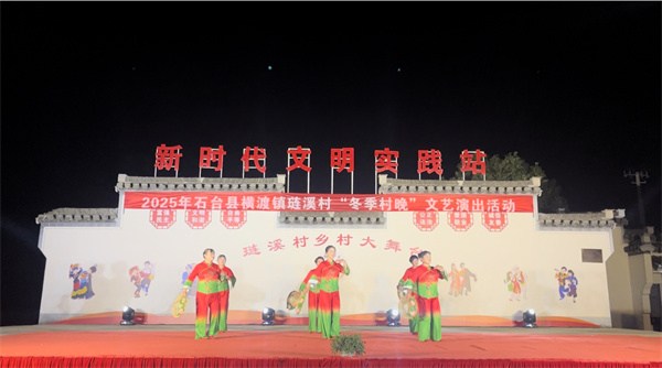 为深化乡村文化振兴战略,助力乡村精神文明建设,11月26日晚,一场由石台县文化和旅游局、横渡镇人民政府共同主办的冬季村晚文艺演出活动在琏溪村新时代文明实践站举办。活动现场丰富多彩的文艺节目为村民献上了一场接地气、聚人气、扬正气的文化盛宴。
