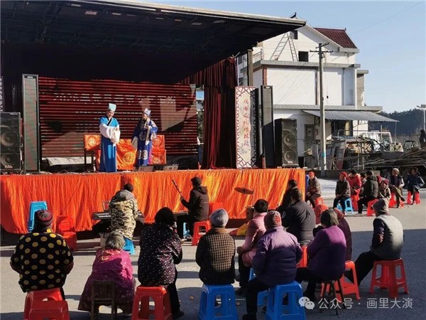 演出现场,石台县黄梅戏剧团倾情演绎了经典黄梅戏《姐妹换嫁》。演员们以精湛的唱功、传神的表演,将剧中两姐妹因婚约错配而引发的一系列悲喜故事刻画得入木三分。婉转的黄梅调在冬日广场上回荡,诙谐生动的对白不时引发观众会心的笑声与热烈的掌声。不少村民扶老携幼前来观看,大树咖啡店外围坐的观众也陶醉其中,现场洋溢着浓厚的传统文化氛围。