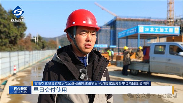 富硒农业融合发展示范区基础设施建设项目、矶滩孵化园劳务单位项目经理周伟:“新年伊始,在这个寒冬时节,我们矶滩乡产业孵化园项目每天也组织230个员工,每日奋力抢干,确保这个项目早日投入生产,早日交付使用。”