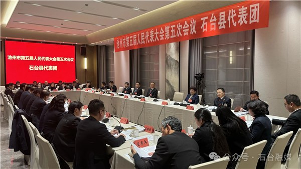 1月27日,市人大常委会主任金庆丰参加市五届人大五次会议石台代表团会议,与代表们一起审议市人民政府工作报告,审查“十五五”规划纲要以及计划、预算报告。