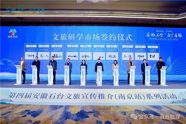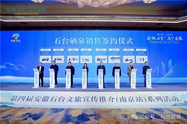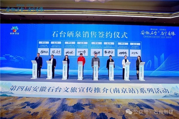 作为本次推介会的核心环节,集中签约仪式实现多领域、多层次合作落地,现场完成文旅市场、疗休养市场、硒泉销售三大领域的集中签约,一系列合作成果的落地,标志着石台与南京及长三角地区的产业联动迈入新阶段,为石台文旅产业发展与富硒资源开发注入强劲动力。