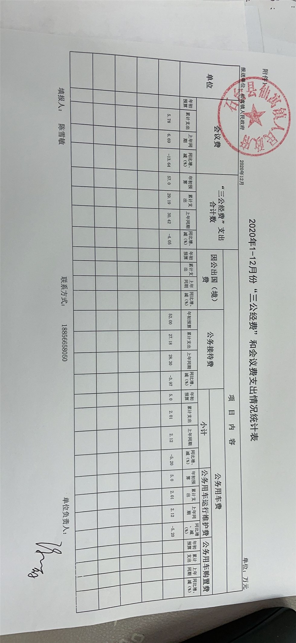 2020年12月份“三公”经费和会议费支出情况统计表