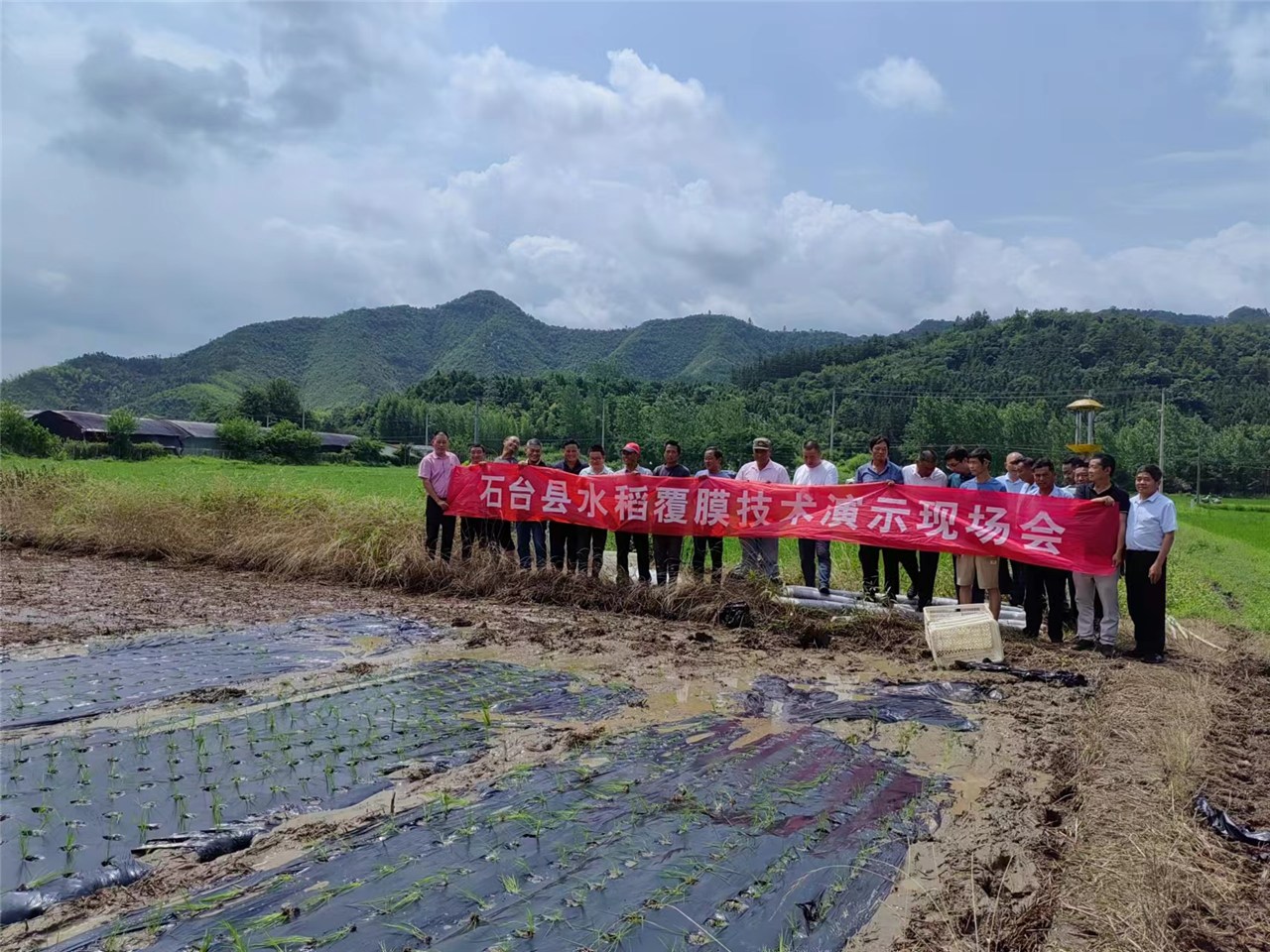 6月26日,石台县水稻覆膜栽培技术现场观摩会在小河镇莘田村召开,相关乡镇种植大户代表和农业技术骨干30余人参加。