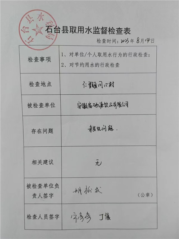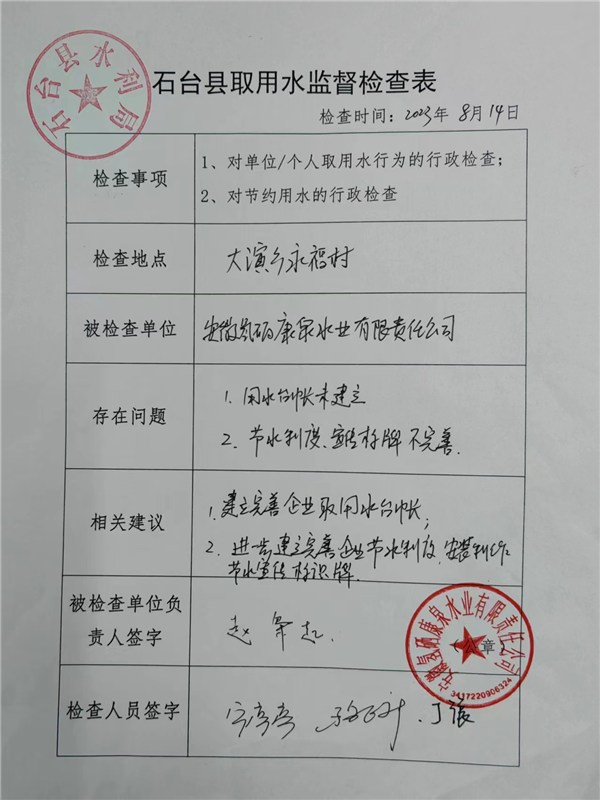 取水许可“双随机、一公开”检查表