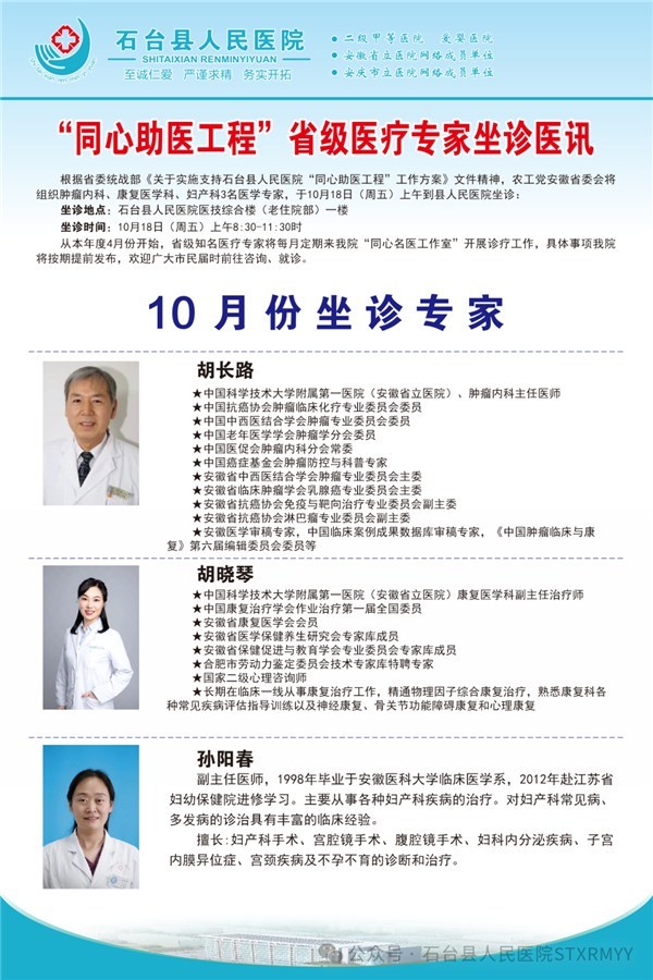 【医疗健康】本周五,“同心助医工程”省级医疗专家来石坐诊医讯