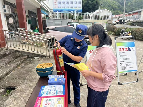 县消防救援局的专业人员还重点讲解了日常生活中常见的火灾隐患、初期火灾的扑救方法以及火场逃生自救技巧,并现场演示了灭火器的正确使用方法,邀请部分群众进行实操体验,确保大家听得懂、学得会、用得上。