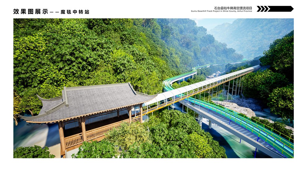 项目建设地点位于石台县大演乡牯牛降双龙谷景区。石台县牯牛降高空漂流项目共分为两个部分:水滑道与上山魔毯。