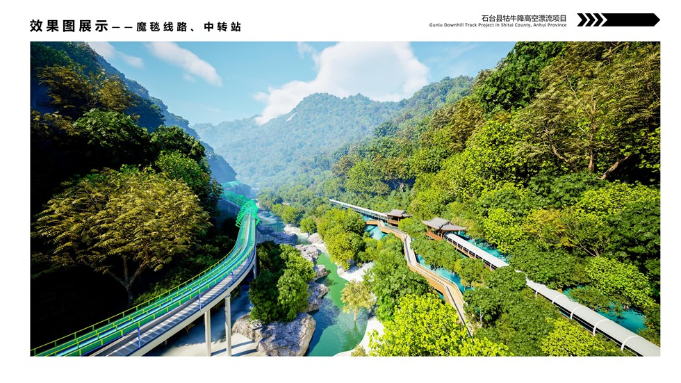 项目建设地点位于石台县大演乡牯牛降双龙谷景区。石台县牯牛降高空漂流项目共分为两个部分:水滑道与上山魔毯。