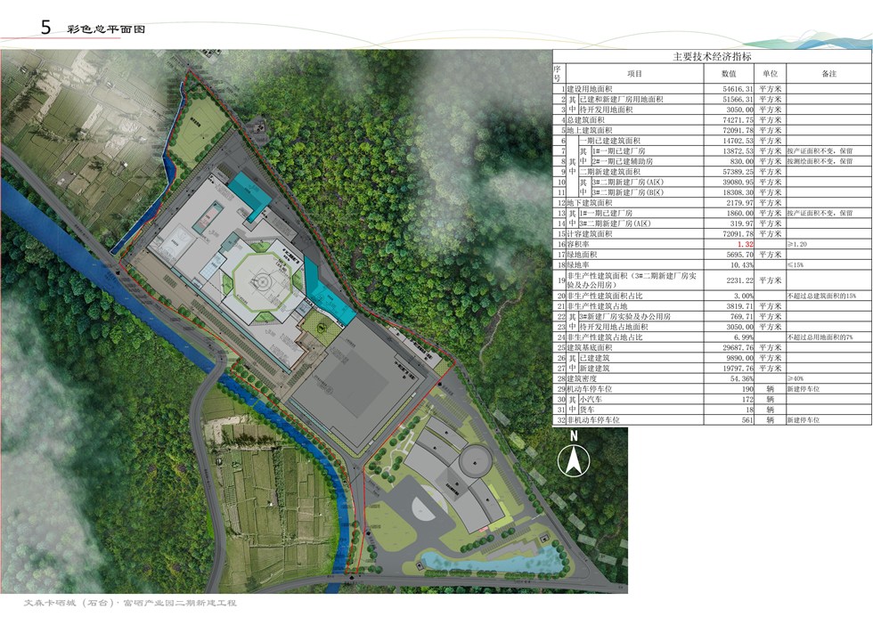 项目位于石台县仙寓镇竹溪村,用地面积54616.31平方米(约81.92亩)。已建和新建厂房用地面积51566.31平方米。总建筑面积74271.75平方米,地上建筑面积72091.78平方米,保留建筑面积14702.53平方米(一期1#厂房地上建筑面积13872.53平方米,地下建筑面积1860平方米、2#设备用房建筑面积830平方米);新建二期3#厂房57389.25平方米;容积率1.32,绿地率10.43%,建筑密度54.36%,机动停车位190辆,非机动停车位561辆。