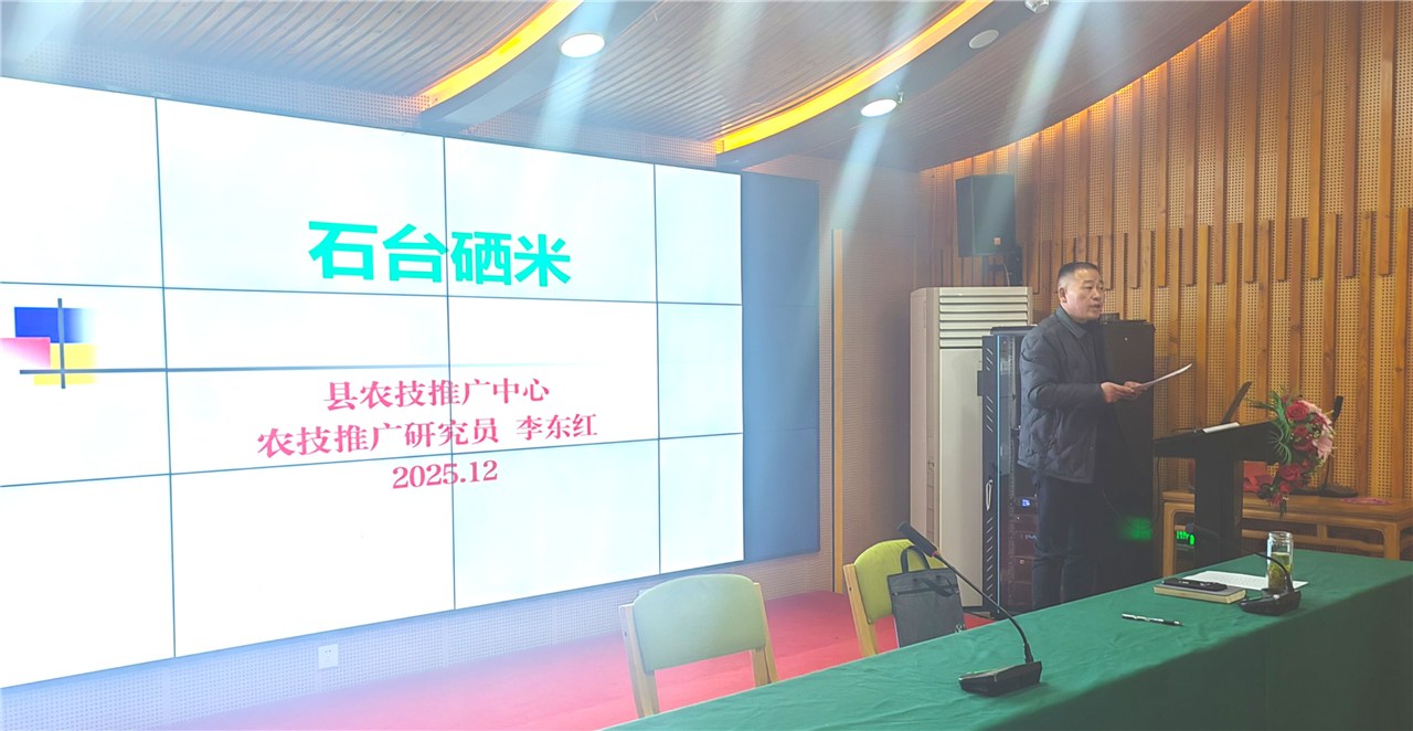 总结会上,与会人员深入学习习近平总书记关于粮食安全的重要论述,全面总结2025年全县粮食安全生产工作,作为“九山半水半分田”的山区县,我县始终把粮食安全摆在突出位置,高位推动责任落实,将种植面积、产量等核心指标纳入目标考核,层层压实党政同责,聚焦粮食单产提升,通过品种改良、精准管理、政策引导为粮食安全提供坚实支撑,助力农业现代化稳步前行。工作总结后,县农业农村局研究员李东红就石台硒米的品种选育、田间管理等关键技术开展了细致的培训,培训过程中采用图文并茂的呈现形式,将专业理论知识转化为通俗易懂的实操要点,帮助种植大户全面把握 “种硒米” 的各环节技术细节与全流程管理逻辑,培训效果获得学员一致认可,现场反馈良好。