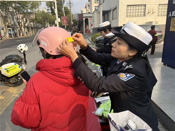 活动期间民警辅警主动走进人群,与群众面对面交流,赠送大家反光袖标和反光车贴并演示运用,耐心讲解交通安全法律法规,结合真实案例剖析不戴头盔、无证驾驶、酒驾等行为的严重危害。这种零距离沟通让安全宣传不再是冰冷的说教,而是有温度的生命提醒。打破传统宣传模式,用趣味互动拉近与市民的距离,让交通安全从 “被动听” 变为 “主动学”。