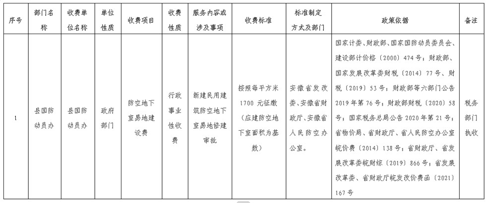 石台县发展和改革委员会部门及下属单位综合性涉企收费目录清单