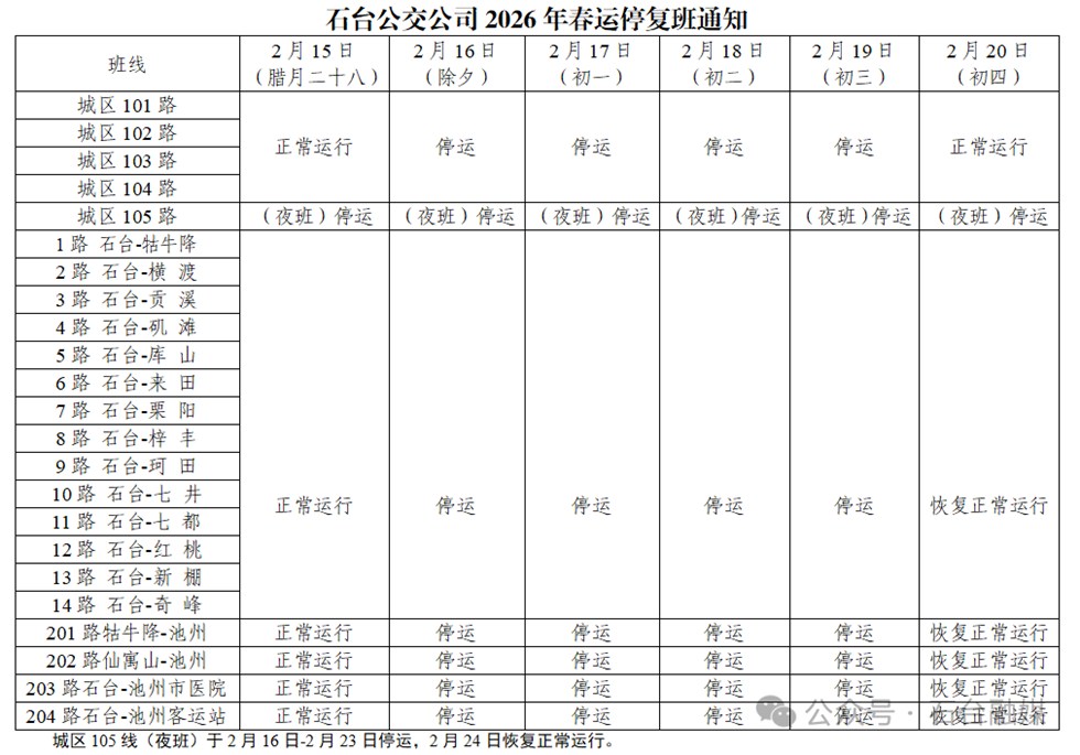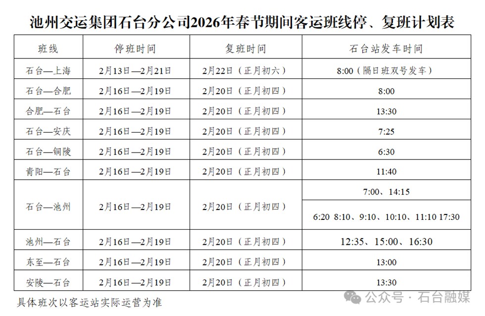 @石台人 2026春运公交,客运班线运营有变!停复班时间表速查→