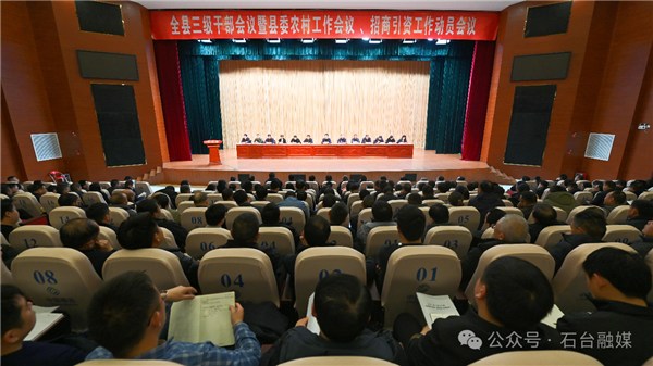 2月28日上午,全县三级干部会议暨县委农村工作会议、招商引资工作动员会议召开。县委书记张勇主持会议并讲话,强调要全面贯彻落实党的二十大和二十届历次全会精神,深入贯彻落实习近平总书记考察安徽重要讲话精神,一体贯彻落实中央、省委农村工作会议和省、市“两会”“新春第一会”精神,动员全县上下坚定“11345”总体思路和“增速领先、人均居前、总量进位”总体目标,以“起步即冲刺、开局即决战”的拼搏姿态,大抓产业、大抓项目、大抓招商、大抓企业,确保“十五五”开好局、起好步,奋力谱写中国式现代化石台篇章。县委副书记、县长汤新异安排部署工作。县人大常委会主任鲍华,县政协主席曹文华,县委常委,县人大常委会、县政府、县政协负责同志,其他在职县级领导干部出席会议。
