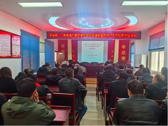 为全面推进全县粮油大面积单产提升工作,切实强化油菜菌核病防控举措,确保粮油丰产丰收,3月5日,县农技推广中心组织召开全县粮油大面积单产提升暨油菜菌核病绿色防控技术培训会。各乡镇农业技术骨干、粮油种植大户、农业企业代表及农业保险从业者等60人参加此次会议。