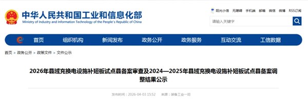 根据财政部、工业和信息化部、交通运输部(以下简称三部门)联合印发的《关于开展2026年县域充换电设施补短板试点申报有关工作的通知》(财办建〔2026〕8号),近日,三部门组织专家对有关省上报的2026年试点县实施方案、2024—2025年试点县调整方案进行了备案审查(名单附后,排名不分先后)。
