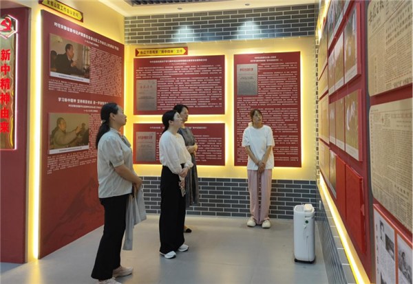 在丁香镇农民工创业园,卢佳丽一行实地察看了园区基础设施建设与企业入驻情况。作为丁香镇筑巢引凤的重要平台,该园区由闲置建成标准化厂房,入驻九华粮品、翱翔体育用品等小微企业43家,培育出帮扶车间5个,实现460余人就近就业,年带动村集体增收20万元。在新中精神展览馆,通过历史实物展品与文字史料,系统观看了新中村的奋斗史。